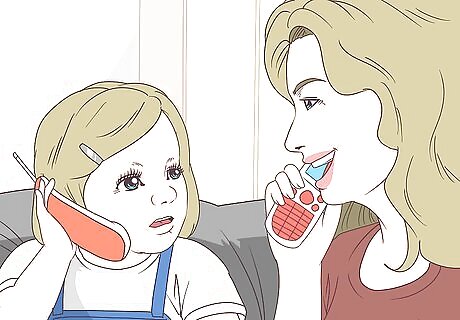 Encourage 2-way communication. When speaking with your child, pause and wait for a response. Try to wait at least 10 seconds to give your child a chance to process what you said and consider developing and sharing a response. Even if your toddler is making babbling sounds or using gibberish words, don’t ignore this essential speech behavior! Get in the habit of responding and awaiting a response to practice 2-way conversation. Show interest to your toddler’s speech with a response like “You have a lot to say today!” or “Are you telling me about the bicycle we just saw?” Practice playing turn-taking games, like rolling a ball back and forth, to teach your child about 2-way interactions. If siblings try to speak for your toddler, thank them for trying to help out, but remind them that you want the younger one(s) to practice for themselves.