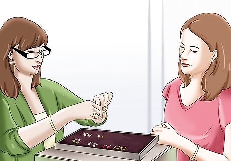 Choose what studs you want. There are usually a lot to choose from. Try to choose some that go with all outfits because you will have to wear them for about six weeks. (depending whether it was a gun or a needle)