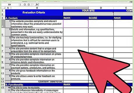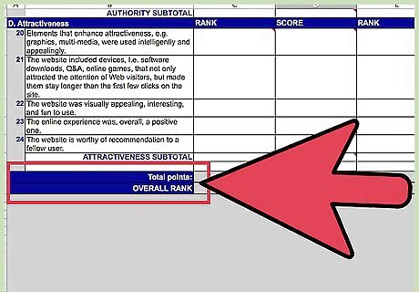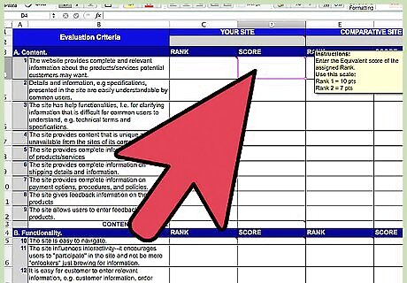 Decide on the criteria for evaluating a website and create a spreadsheet on a computer program or piece of paper. Ask your fellow evaluators to rate the website on a scale of 1 to 5, 1 to 10 or simply by checking a box if the website has that feature.