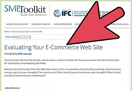 Review the website's functionality. This is the ease of navigating and purchasing from the website, as well as finding help, if it is needed. The following are good criteria for judging website functionality: Review or rate the ease of navigating the website. Any e-commerce website should allow you to move from homepage to product pages to shopping carts. Review whether the e-commerce site encourages customers and users to get involved. This is the ease of reviewing purchases, posting comments on articles or asking questions to support staff. See whether the customer can perform 1-click shopping. This means the customer can click on an "add to shopping cart" button and be able to check out immediately. This is an important feature of any website. Decide whether the website provides relevant links to other products, reviews or websites. The site should encourage interaction with its customers. Evaluate the customer service provided by the website. Are there easy ways to access staff by phone, email, and even instant messaging? The more options and hours per day they provide customer service, the better the experience will be if there is a problem.