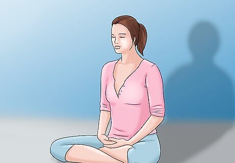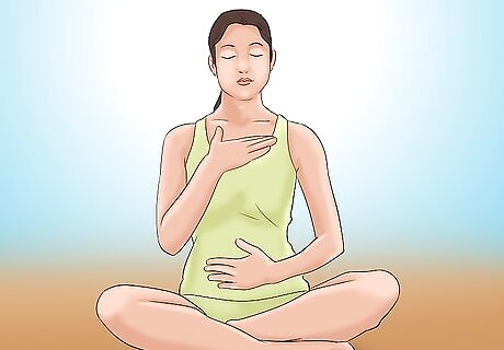Exhale. Follow your breath out of your body, empty your stomach first, lower lungs, followed by upper lungs. Allow your shoulders to completely relax. During an exhalation, your diaphragm moves up, compressing the lungs and pushing air out.