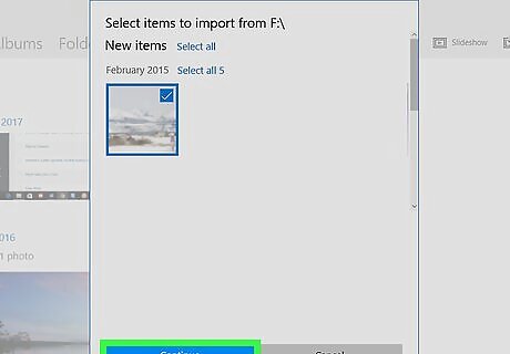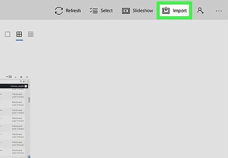 Click the square button with a downward arrow. It’s towards the top-right corner of the window and displays photos to import. If Photos opened automatically when you connected to the computer, then you will not need to push the import button. If you get a message saying “There’s nothing to import,” enter your passcode into your iPhone then Try Again. If this is the first time you’ve connected to your PC, you may also have to tap Trust This Computer on your iPhone.