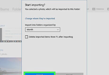 Click Import. The photos will be exported from your iPhone to the file of your choosing on your PC. A message from Photos will pop up when the process is complete.