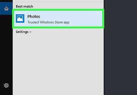 Open Windows Photos. The icon is two mountain peaks in a square. Photos may open on its own when you plug your phone in.