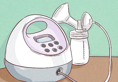Choose a hospital grade pump for frequent milk expression. It’s best to use a hospital-grade double pump, especially if you plan to pump exclusively or if you will need to pump for the first few days or weeks of your baby’s life. You can purchase or rent a pump. Your insurance might even cover the cost of a hospital-grade pump. Plan to pump between 8 to 10 times in a 24 hours period including at least 1 nighttime pumping session. This will help to ensure adequate stimulation and send the signal to your body to make more milk.
