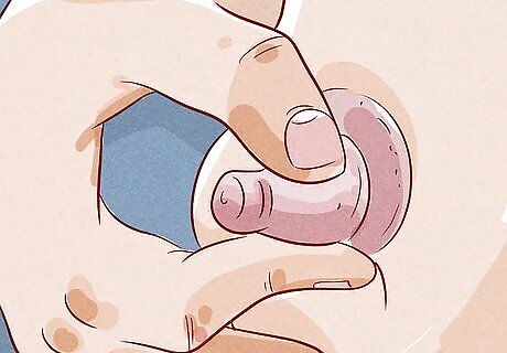 Roll your nipple between your forefinger and thumb. After massaging the breast, use your forefinger and thumb to gently pinch the nipple about ⁄2 in (1.3 cm) from the tip. Roll the nipple back and forth between your forefinger and thumb for about 1 minute. Don’t pinch too hard or you may hurt yourself! Keep a gentle but firm grip.