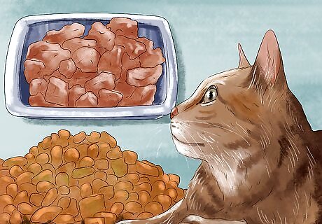 Mix up the food you provide. Feed your cat a mixture of canned wet food and dry food. This can broaden their culinary horizons and ensure they get plenty of nutrients and moisture in their diet.