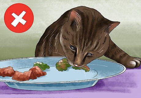 Avoid free-feeding. Letting your cat nibble all day, or free-feeding, can cause it to gain weight. This can also turn them into a picky eater. Gradually stop or avoid free-feeding altogether if you notice your cat is a fussy eater. Instead of free-feeding, many vets recommend feeding your cat at specific mealtimes. Avoid giving your cat table scraps, which can also contribute to fussy eating habits.