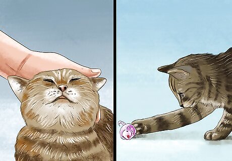 Provide attention before mealtimes. Throwing your cat a ball or playing with a chase toy before they eat can stimulate their appetite. Try stroking or petting before mealtimes to calm your cat and get them ready to eat.