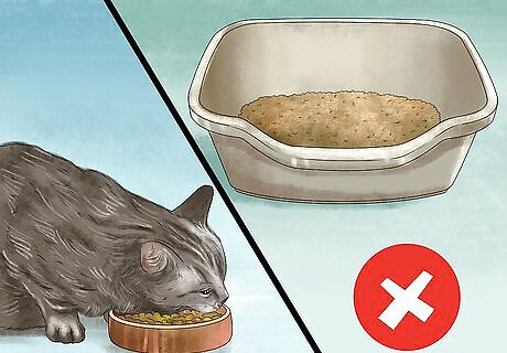 Create a designated eating space. The location of your cat’s food dishes can contribute to their desire to eat. Place dishes in a space where other animals or humans can’t sneak up on them or trap them. Avoid setting dishes in areas where equipment such as motors or refrigerators can turn on and startle them. Keep your cat’s eating areas clear of obstacles such as the litter box, which may turn off some cats from eating. Ensuring your cat has a cozy eating space may decrease any fussiness over food. Move food dishes only if absolutely necessary. This can confuse cats and cause fussiness at mealtimes.