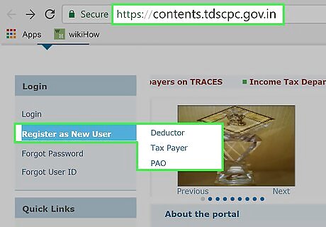 Register your TAN with the Income Tax Department. Before you can deduct income tax from your employees' salaries, you must register as a tax deductor. Go to https://nriservices.tdscpc.gov.in/nriapp/login.xhtml and click on "Register as New User" to set up your account. Provide the necessary information and create a user name and password. On the next screen, you'll have the opportunity to check over the information you provided and make sure it's correct. If you made a mistake, you can edit. An activation link will be sent to the email address or mobile phone number you provided.