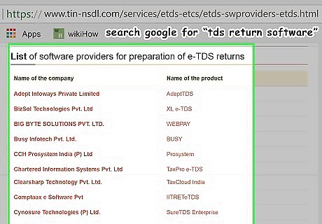 Download electronic return software. Electronic TDS returns must be submitted in a particular data format. The software to produce these returns is available for download online at no charge. You can also use approved commercial software, or hire an accountant to file your returns for you. To download return software and submit your returns yourself, visit the website of the Income Tax Department at www.incometaxindia.gov.in. Software is also available from the NSDL e-Governance Infrastructure Limited website at www.tin-nsdl.com.