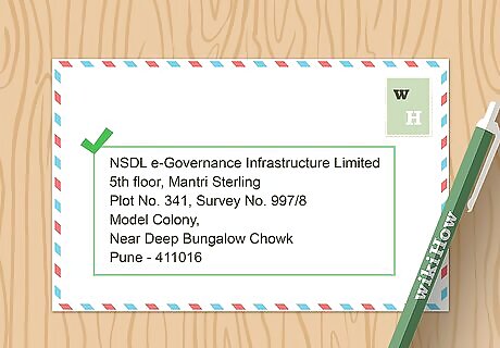 Complete your acknowledgement form. When you complete and submit your online application, you'll be taken to an acknowledgement screen. This screen displays a 14-digit acknowledgement number, your name, contact information, and the status of your application. Print at least 2 copies of this screen (one to submit to the Income Tax Department and one for your records). If you decided to print and mail in a paper application, the verification and acknowledgement is the second page of your application. Sign and place your left thumbprint in the space provided in the presence of a notary. The notary will verify your identification and notarize the document with their signature and seal. Send your application or acknowledgement form along with your payment for the processing fee to NSDL e_Governance Infrastructure Limited, 5th floor, Mantri Sterling, Plot No. 341, Survey No. 997/8, Model Colony, Near Deep Bungalow Chowk, Pune – 411016.