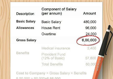 Calculate each employee's total earnings. Total earnings include each employee's base salary, plus allowances and perquisites. Perquisites include the value of any facilities or other benefits provided by you to your employees, such as canteen, hotel, or fuel expenses. TDS is calculated based on yearly income. You can also total monthly income and multiply by 12 to get the yearly amount.