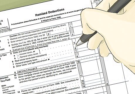 List your deductions. You can take the standard deduction or itemize for deductible expenses. For the 2019 tax year, the standard deduction will be $12,200 for those filing as single or married filing separately or $24,400 for married filing jointly. The standard deduction is required unless you have more than the allowed standard deduction amount in itemized deductions. Allowable deductions may include home mortgage interest, state and local income taxes or sales tax (but not both), charitable contributions, unreimbursed medical expenses, and real estate and personal property taxes.
