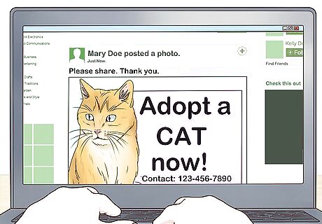 Approach a shelter. Ask for guidance in finding the cat a home but also discuss the option of the cat going to the shelter. Unfortunately shelters are full to bursting with unwanted pets, and they are often too full to take in more. If you do happen to find a shelter with a slot, be certain to find out if they have a no-kill policy. Some shelters are so overwhelmed that they have to euthanize a high percentage of those they take in. In some cases the kill rate is as high as 95%, so be sure you understand what you are signing the cat up for.