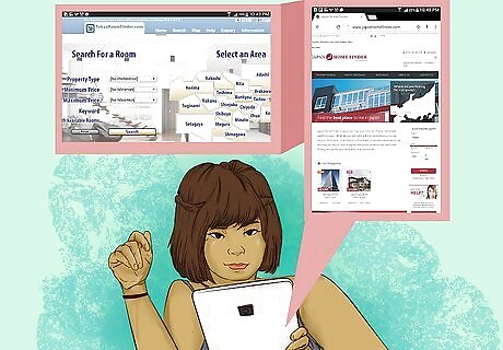Use an online search engine. There are search engines online specifically for the sake of looking up vacant apartments and lodgings in Japan. Sites like Tokyo Roomfinder and Japan Homefinder are there to give you insight into what is available in the area you want to stay in. There are foreigner-friendly rental agencies specifically to help people new to Japan find accommodations. Foreigners typically find difficulty finding housing in the traditional housing market. Apartment finders and real estate sites will have plenty of listings of potential places you should look into.