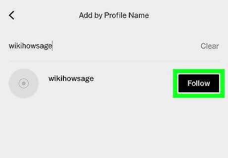 Tap Follow next to the person you want to add. The white Follow button will turn into a black "Following," which means you are now following this person on VSCO.