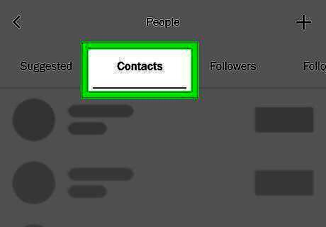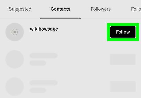 Tap the Contacts tab. It's next to "Suggested" at the top of the page. Alternatively, you can tap the Suggested tab here, and follow accounts that are suggested for you based on your contacts, location, and activity.