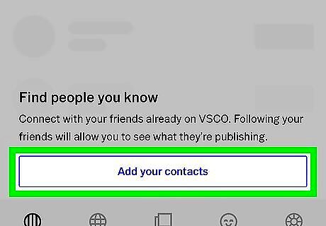 Tap the Add from contacts button. It's at the bottom of the Contacts tab. If you previously allowed the VSCO app access to your contacts, you may just see a list of all your contacts here. If you're prompted to verify your phone, enter your number and tap the Next button. This will send you a text message containing a verification code. Follow the on-screen instructions to enter that code and verify your account.