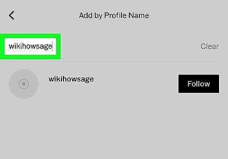 Tap Add by Profile Name. This opens a search bar where you can search for people you know who are already using VSCO.