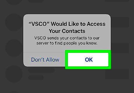 Tap Allow in the pop-up. This gives VSCO permission to access your contacts.