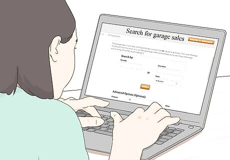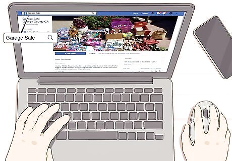 Check Facebook for garage sale posts or groups. Try going to your Facebook homepage and entering yard or garage sale into the search tab. The website will use your location to find advertised sales near you. You’ll need to be logged in to your Facebook account to use this feature. If you don’t have one, see if a friend or family member will let you use theirs to search. There are also some groups dedicated to spreading garage sale news. Try joining some of these for the latest information. You could also look on the Facebook Marketplace, but this is more for people selling specific items.