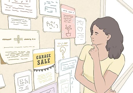 Look for advertisements on community bulletin boards or signs. Check any places in your town that have bulletin boards for flyers about garage sales. Take a picture of any flyers you find to remember the information. Some people also hang flyers on traffic and telephone poles, so keep an eye out for these as well. Common places for bulletin boards are libraries, government buildings, churches or religious buildings, and community meeting halls. Some local businesses may also have bulletin boards. Check bookstores, coffee shops, delis, and supermarkets as well. This might sound old-fashioned, but it’s still a great way to find local postings for garage sales. Many people having garage sales are older and might not use the internet much.