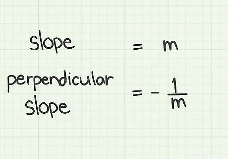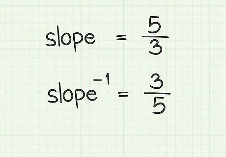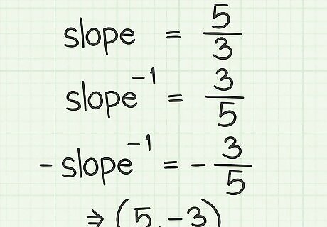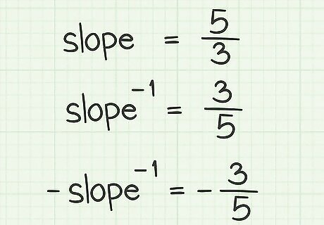 Find the negative reciprocal. If the slope of the original vector is positive, then the slope of the perpendicular vector will have to be negative. Conversely, if the slope of the original vector is negative, then the slope of the perpendicular vector will be positive. In the working example, the original slope was 5 3 {\displaystyle {\frac {5}{3}}} {\frac {5}{3}}, so the slope of the perpendicular vector must be − 3 5 {\displaystyle -{\frac {3}{5}}} -{\frac {3}{5}}.