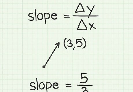 Recall the formula for slope. The slope of any given line or line segment is calculated by dividing the vertical change (or the “rise”) by the horizontal change (the “run”). This can be expressed more symbolically as follows: slope = Δ x Δ y {\displaystyle {\text{slope}}={\frac {\Delta x}{\Delta y}}} {\text{slope}}={\frac {\Delta x}{\Delta y}}