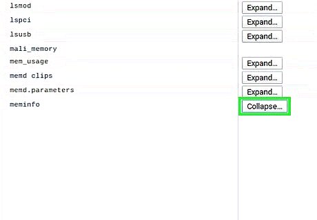Find meminfo. Scroll through the System Information menu until you find meminfo. Click Expand... to the right of meminfo to open the menu.