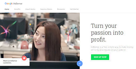 Go to www.google.com/adsense in your web browser. If you aren't already signed in, click on the SIGN IN link at the top-right corner of the page and log in with your Google account.