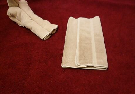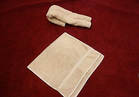 Lay a hand towel on a flat surface. Be sure to orient it in the “portrait” position in front of you (i.e. short sides up and down, long sides to the left and right).