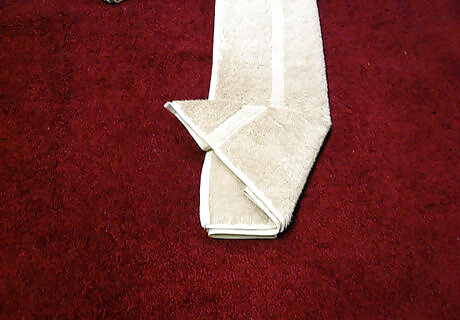 Grab the top of the hand towel and fold it down over the bottom half.