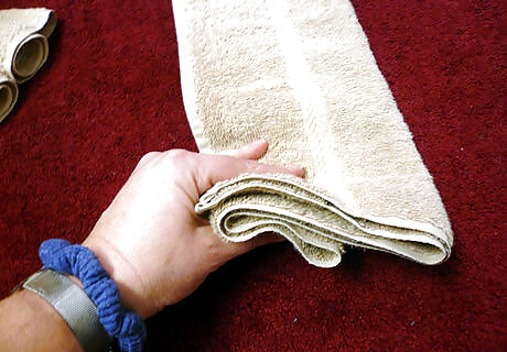 Grab the bottom corner of the top layer of towel.