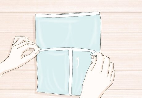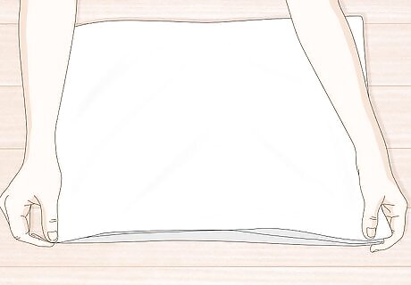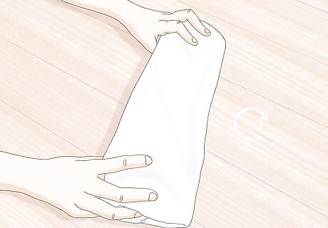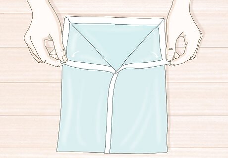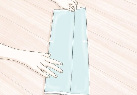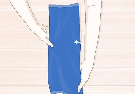 Fold the hand towel into long quarters. Fold the long sides of the hand towel in to meet at the center, with one side slightly overlapping the other (like the sides of a buttoned shirt).