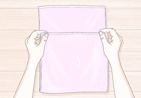 Fold a hand towel in half. Hand towels are usually hung up, and so they are only folded in half lengthwise. If you do not want the side seams to show, fold the long sides in so that they meet at the center and place the nice side facing outwards.