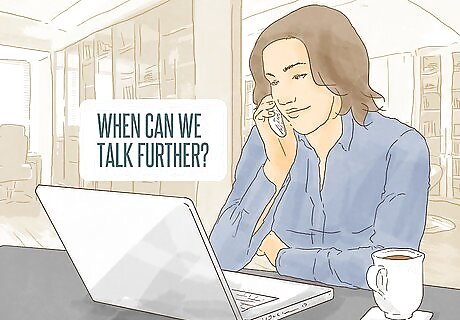Ask about an interview timeline. Before you hang up, thank the hiring manager for their time and ask them about a time line for next steps. If you feel particularly bold, you can even end with a line like, “When would be a good time to meet and talk about this further?”