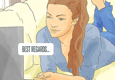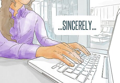 Use a formal sign-off. Sign off your email with a formal closing and your full name. Avoid sign-off like, “With love,” and, “Thx.” Instead, opt for something more professional like, “Sincerely,” or “Best regards.” Be sure to sign off with both your first and last name. This will help the hiring manager identify your application. After all, you never know how many people with the same name are applying.