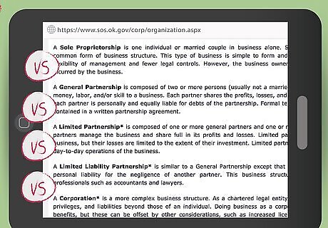 Decide if an LLC is right for you. There are several business structures to choose from (in the state of Oklahoma, these include a sole proprietorship, general partnership, limited partnership, limited liability partnership, and corporation), but the LLC is a good choice for the majority of small businesses. An LLC might be right for you if: You are concerned about personal liability for potential lawsuits or debts that might result from a business venture. You are not forming a bank or insurance company. In Oklahoma, LLCs are permitted to engage in any lawful business except banking and insurance. You are forming a company on your own and/or you do not plan to have investors or shareholders. In every state, many business structures require more than one person to officially register with the state; but you can form an LLC with just one person, and you can own and manage it on your own. However, LLCS don't have the flexibility of a corporation, so you cannot add investors or shareholders later on. You are ethical and responsible. If you act illegally or irresponsibly, you can lose the protection of an LLC, and in that situation your personal assets might be at risk. A judge can decide to bypass the limited liability clause if he or she feels you intentionally caused a bad situation with your company.