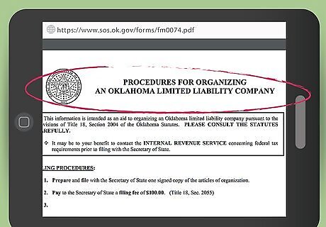 Be sure you meet the requirements to apply for an LLC. In the state of Oklahoma, these requirements are few: You must be 18. You must be a resident of Oklahoma or, if you are a domestic or foreign LLC registering specifically to do business in Oklahoma, you must maintain a business office with a street address (not a post office box). You must have $100 to pay a filing fee, plus a 4% service charge if you use a credit card.