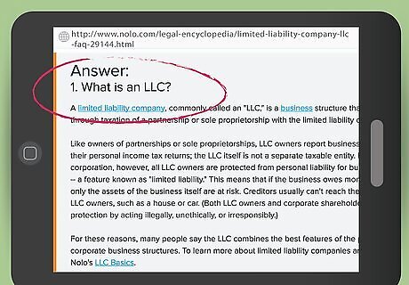 Know the purpose of an LLC. Every business must be legally registered with the state it operates in for taxation purposes. A limited liability company allows for a simple taxation process but also helps protect your personal assets in the event of a lawsuit or bankruptcy. If you own an LLC, you report your business earnings or losses annually on your personal income tax return. This means your company does not have to file taxes separately. The "limited liability" aspect of an LLC means that even though you personally file taxes on the company, you are not personally liable if your company ends up in a lawsuit or owing money. In that situation, only the assets of the business are at risk, instead of your personal assets.