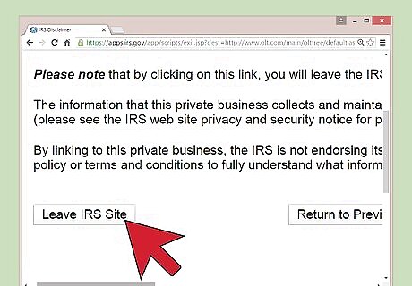 Continue to the IRS' partner website. Once you find a software company that fits your needs, you will click on that company's link. When you do so, a disclaimer will pop up letting you know that you are leaving the IRS website and going to a private site. Click "Leave IRS Site" and continue to the private site you chose.