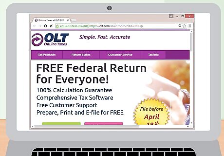 Choose a free file software. Select the best software match for you by reading through the descriptions of each company or use the "help me" tool to narrow your choices. Each company's eligibility criteria is generally based on income, age, state residency, eligibility for the Earned Income Tax Credit, and military status. If your income is less than $60,000 per year, there will be at least one option available to you. For example: OLT.com offers free returns to people with an income between $13,000 and $60,000 per year so long as you are a U.S. citizen. H&R Block offers free federal returns if your income is less than $53,500, you are under the age of 53 or you are eligible for the Earned Income Tax Credit. TaxSlayer offers free returns if your income is less than $33,000 per year, or less than $60,000 per year for active military members.