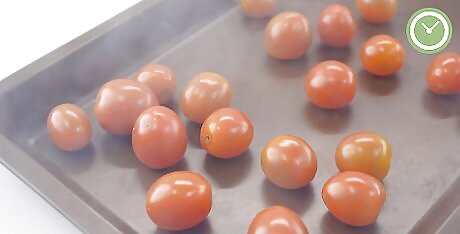 Freeze your tomatoes for up to 6 months. When properly frozen, cherry tomatoes will stay good for around half a year, or possibly longer. Their exact shelf life could potentially be longer or shorter, so it’s best to keep an eye on them and use them before they begin to show signs of impending expiration, like accumulating frost. Be sure to label your container or containers with the current day’s date so you’ll know how long your tomatoes have been in cold storage. If a bountiful summer harvest gave you more cherry tomatoes than you know what to do with, freezing them is a great way to make them last and continue enjoying them all year-round.