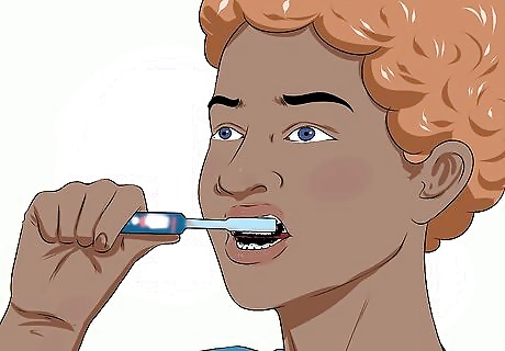 Try brushing your teeth with it. One way some people use activated charcoal is when they brush your teeth. Just wet and put toothpaste on your brush as usual. Sprinkle or dip the brush into activated charcoal, then brush your teeth normally. Don't worry, you won't taste anything, although it will turn your mouth temporarily black. Some people say using charcoal on your teeth gets them whiter and cleaner. However, you don't want to use it on your teeth too much, as it is abrasive and could harm your teeth over time. Talk to your dentist before starting this treatment, as they know your specific needs.