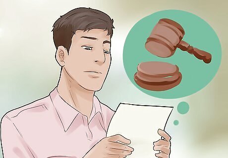 Attend the court hearing. You will need to give testimony supporting your request in front of a judge. You may ask for specific protections at the hearing depending on your situation. Bring evidence to support your claims. This includes any medical or police records and pictures. The abuser is also offered the opportunity to give their side of the story. If the abuser does not show up to the hearing, the restraining order is usually granted. When you attend your hearing, dress nicely and remain calm. Do not yell or show any anger, even if you are angry or upset. This will not help you get a restraining order. Pay attention to how you talk to the judge. You have to go to the hearing or the process will be delayed. You may have a lawyer present at your hearing, but it isn't mandatory.