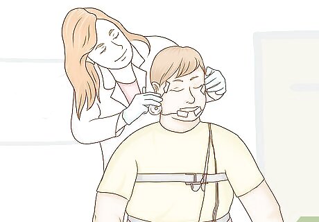 Make an appointment with your primary doctor and explain your symptoms. Sleep centers usually require a referral from your primary care doctor, so visit them first. At the appointment, explain any issues you’ve had and why you think you have a problem. Bring your sleep diary with you to show that you’ve documented the issue. Your doctor will examine you and determine if you need a sleep study done. Your doctor may also want you to try a few remedies before referring a sleep study. Common instructions include reducing or eliminating caffeine, changing your medications, or trying relaxation techniques before bed. Follow these instructions and report back to the doctor if they don’t work for you.