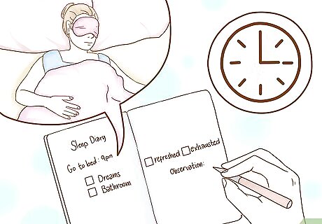 Track your sleeping habits with a sleep diary. If you suspect you have a sleeping disorder, track your sleep. Keep a notebook next to your bed and write down details about your sleep. Bring this diary to the doctor when you book your appointment so they can see what issues you may be having. Important things to write down would be what time you go to bed, when you wake up during the night, vivid or intense dreams, and if you got up to go to the bathroom. Also note how you feel when you wake up. Do you wake up refreshed or are you still exhausted? This can indicate a sleep issue as well. Ask your partner if they observed anything and write that down in your diary as well.