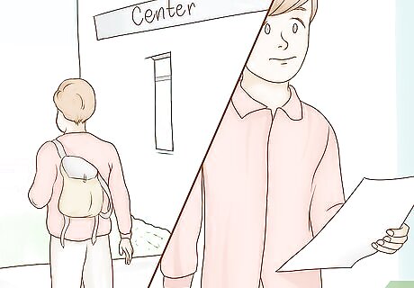 Arrive at the sleep center on time. There is usually prep work before a sleep study, so get to your appointment on time. Once you arrive, the specialists will give you a rundown of what to expect throughout the night and hook you up to the necessary machines to track your sleep. Arrival times for a sleep study are usually 6 or 7 PM, but follow the instructions that you’re given. If you have to cancel your appointment, do so as soon as possible to avoid charges.